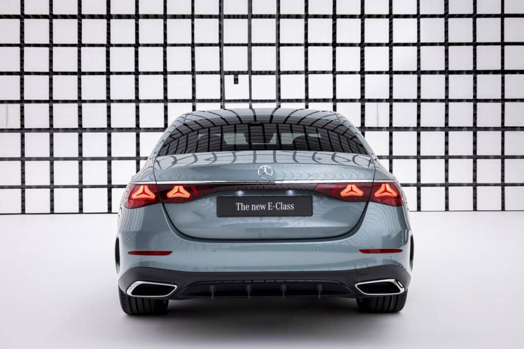 تم الكشف عن سيارة مرسيدس بنز إي كلاس 2024 Mercedes-Benz E-Class، مزودة بقوة هجينة وتقنيات متقدمة، وتتشابه مع الفئة S، ليس فقط في الهيكل الكلي، ولكن في بعض التفاصيل مثل مقابض الأبواب المتدفقة والخط الأفقي القوي المكسو بالكروم الممتد عبر غطاء صندوق السيارة بين المصابيح الخلفية.